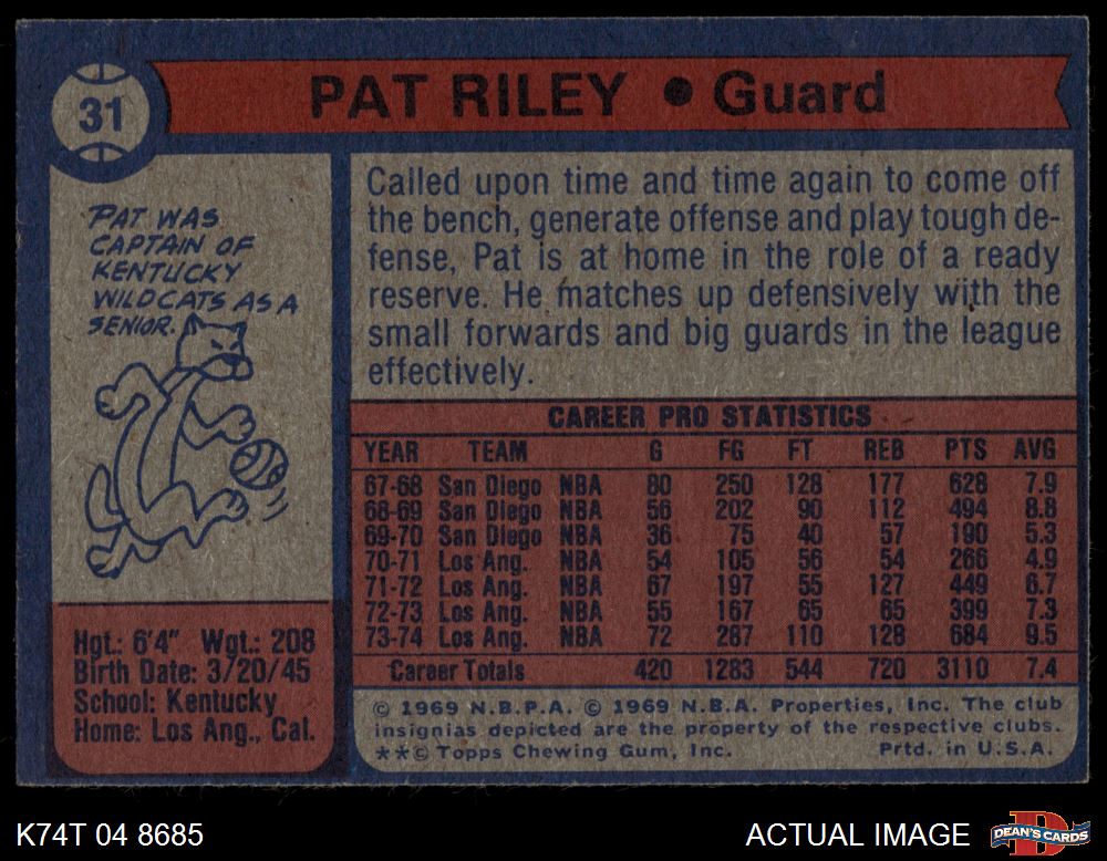 1974 Topps #31 Pat Riley 3 - VG