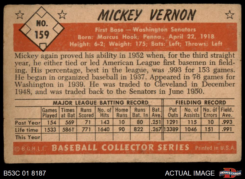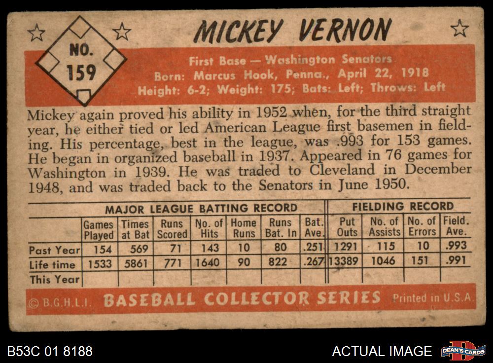 1953 Bowman #159 Mickey Vernon 2 - GOOD