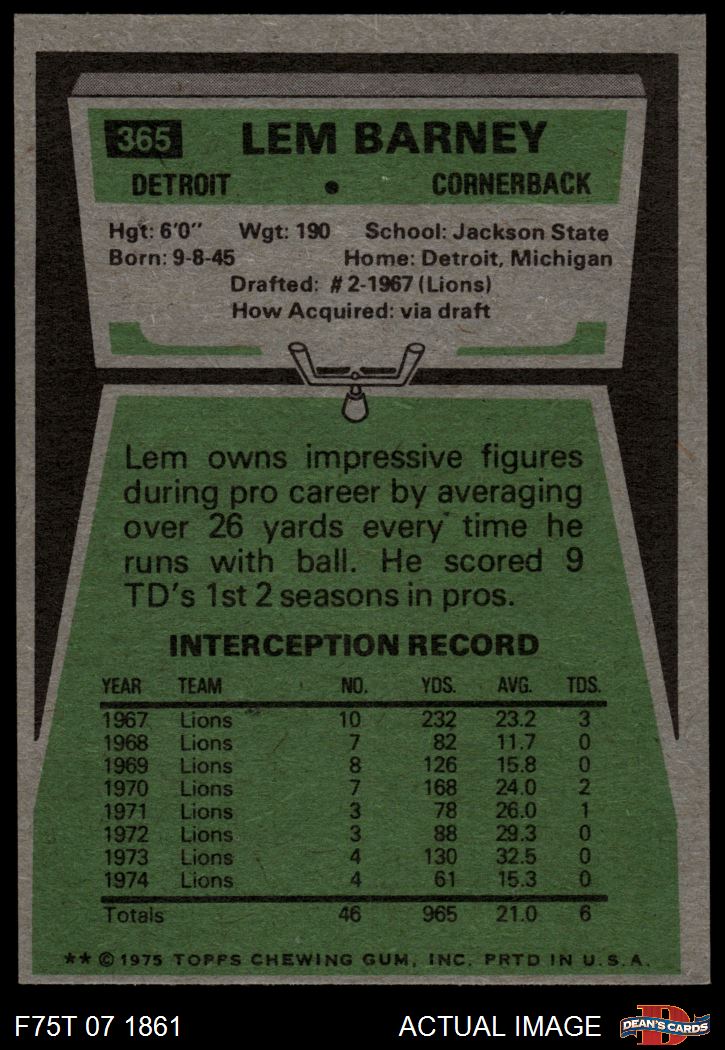 1975 Topps #365 Lem Barney