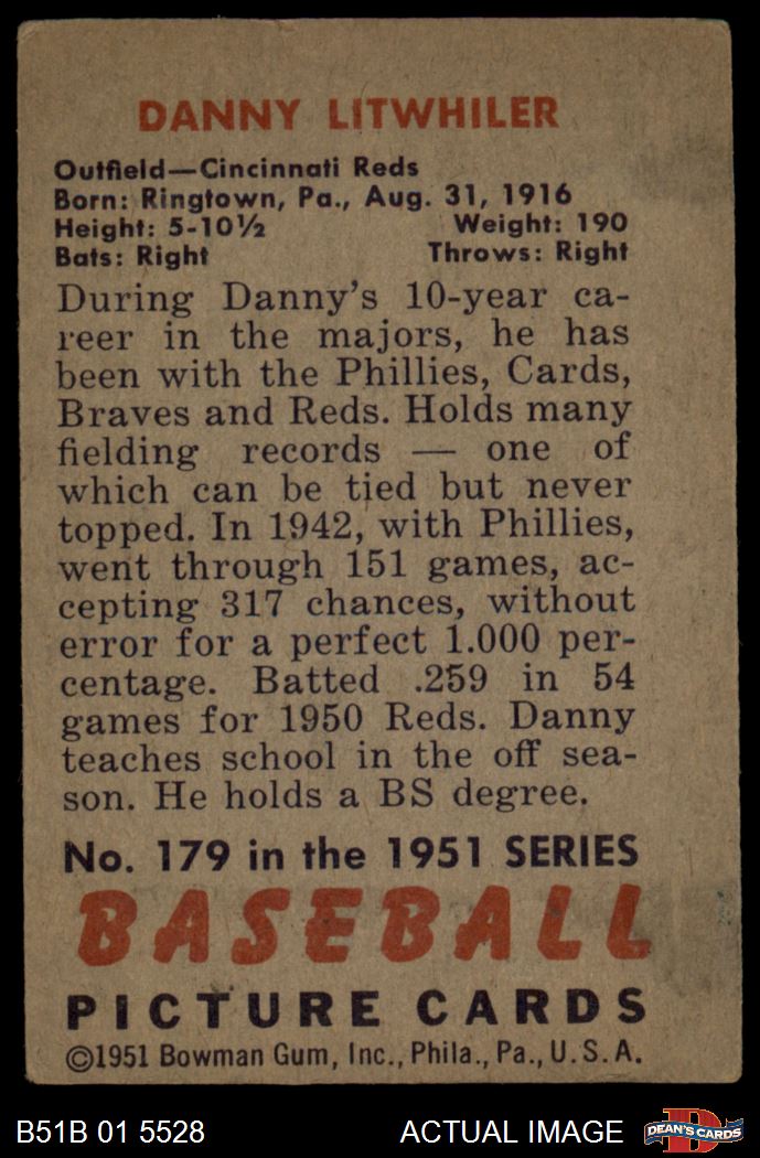 1951 Bowman #179 Danny Litwhiler 2 - GOOD