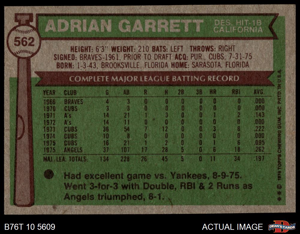1976 Topps #562 Adrian Garrett 7 - NM