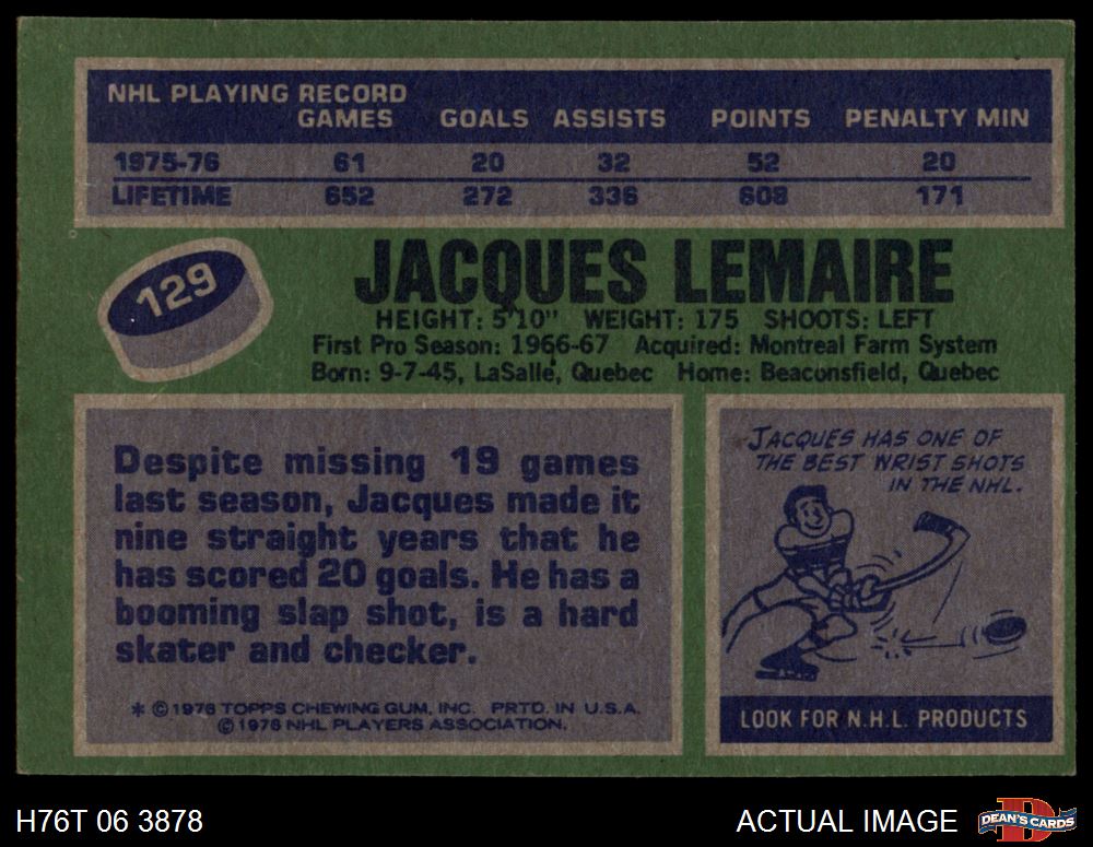 1976 Topps #129 Jacques Lemaire 6 - EX/MT