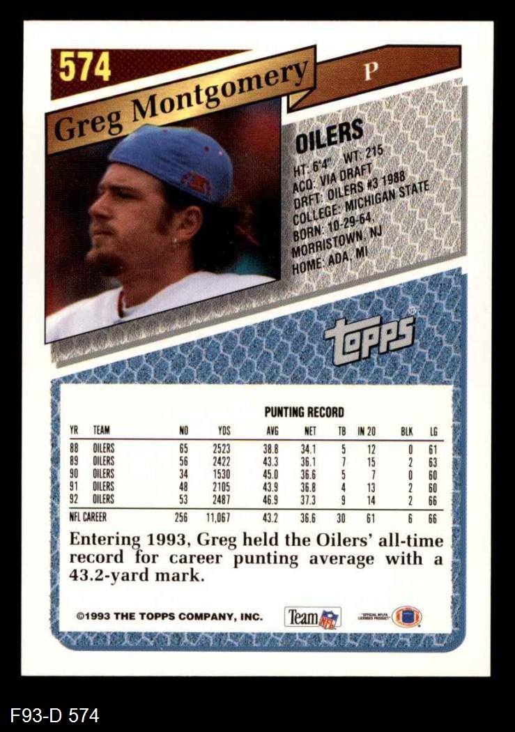 1993 Topps #574 Greg Montgomery 8 - NM/MT