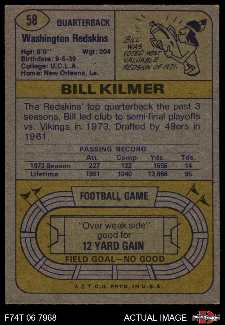 1974 Topps #58 ONE Billy Kilmer 4 - VG/EX