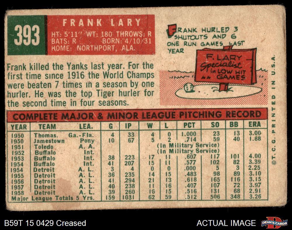 1959 Topps #393 Frank Lary 1 - POOR