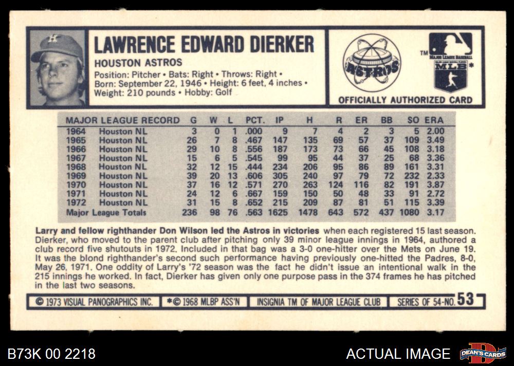 1973 Kellogg's #53 Larry Dierker 5 - EX