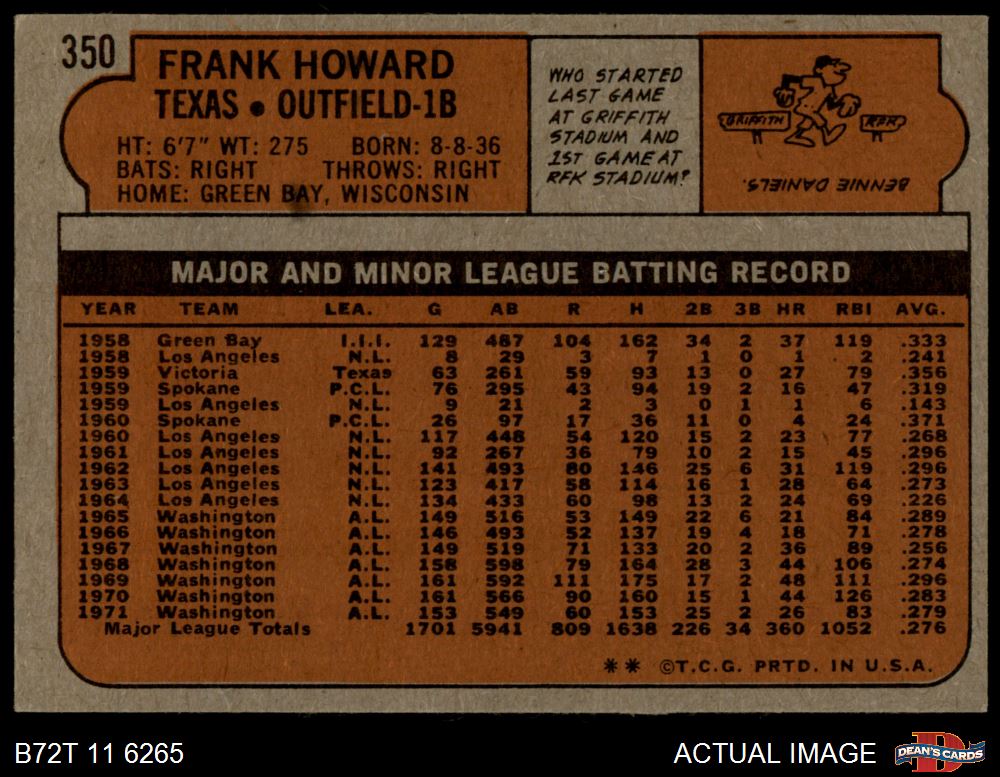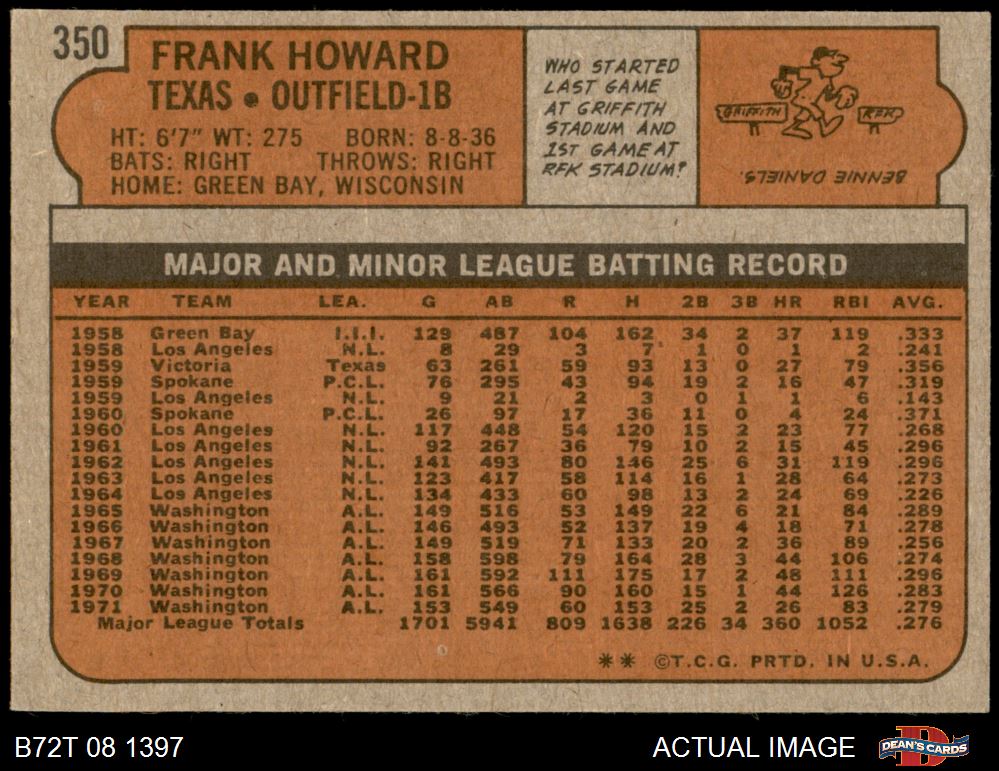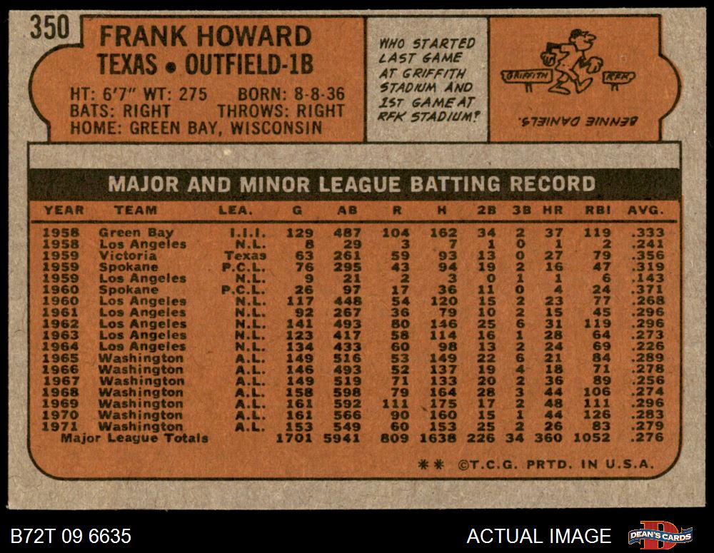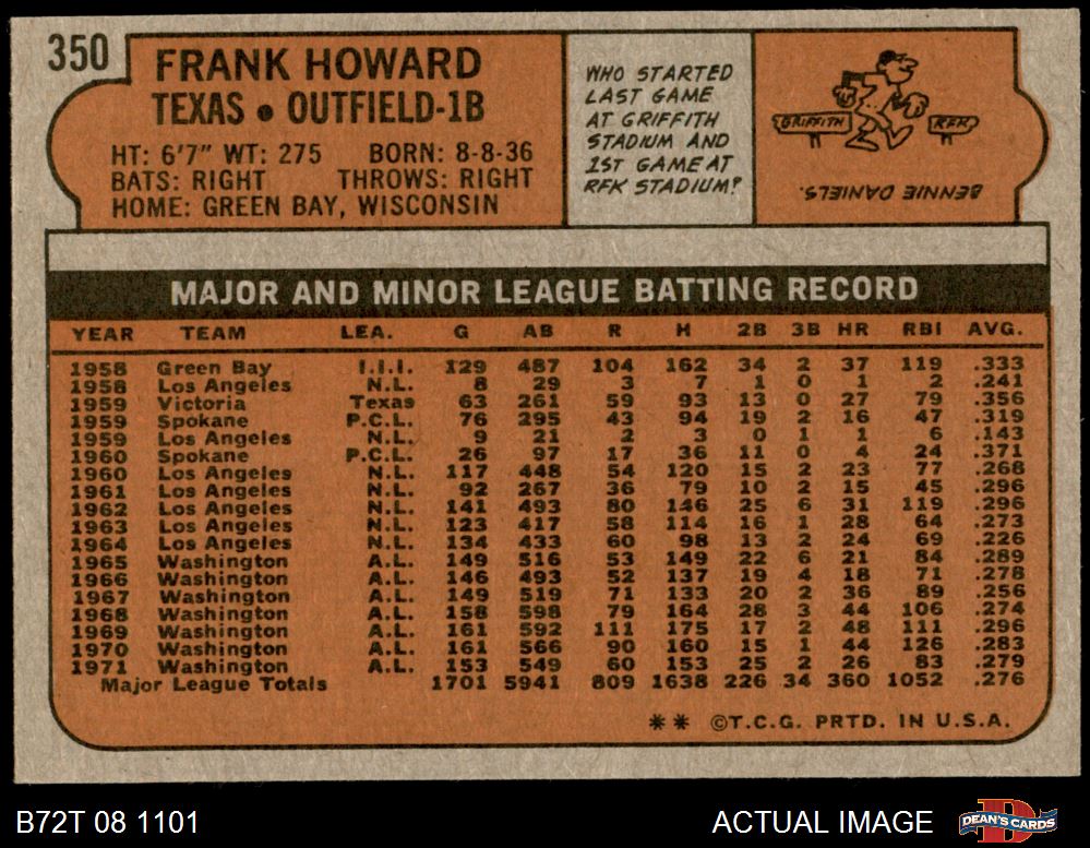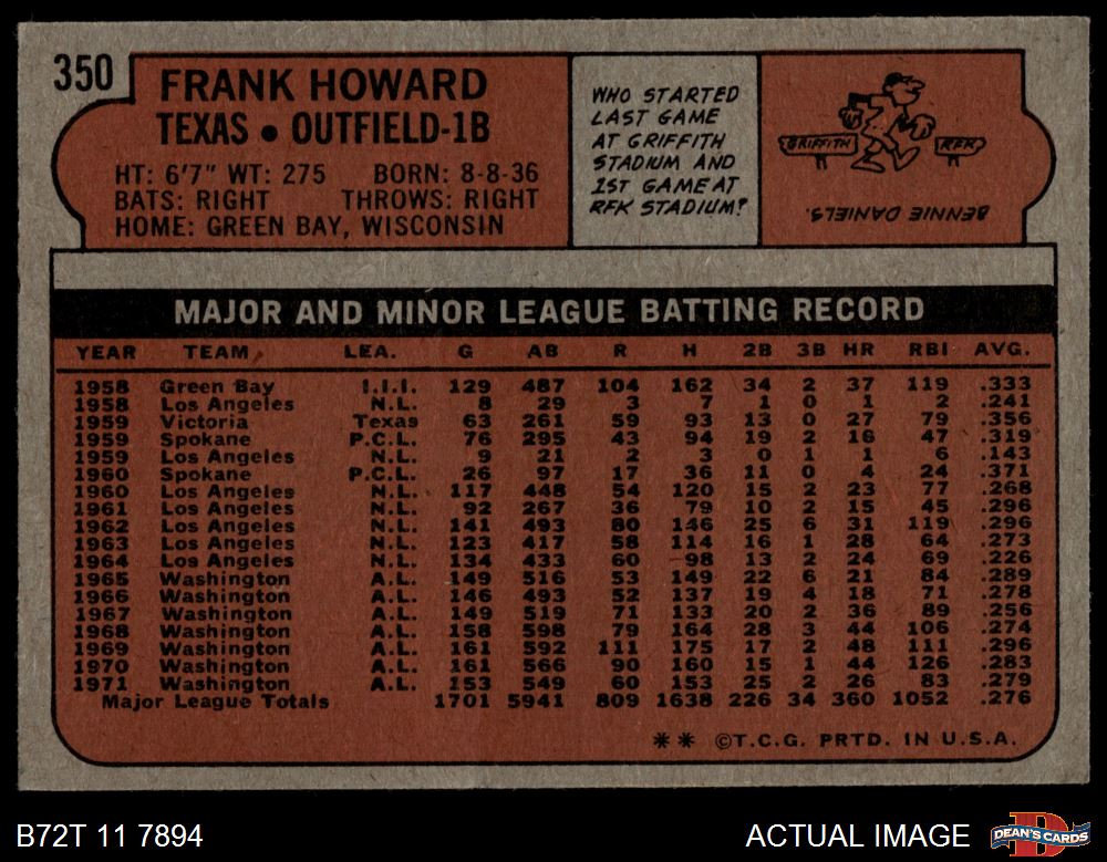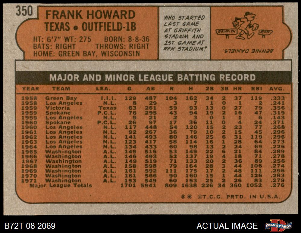 1972 Topps #350 Frank Howard