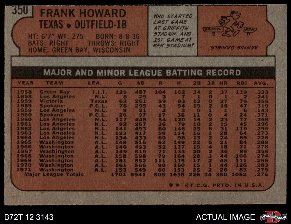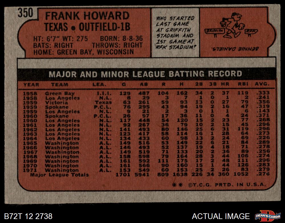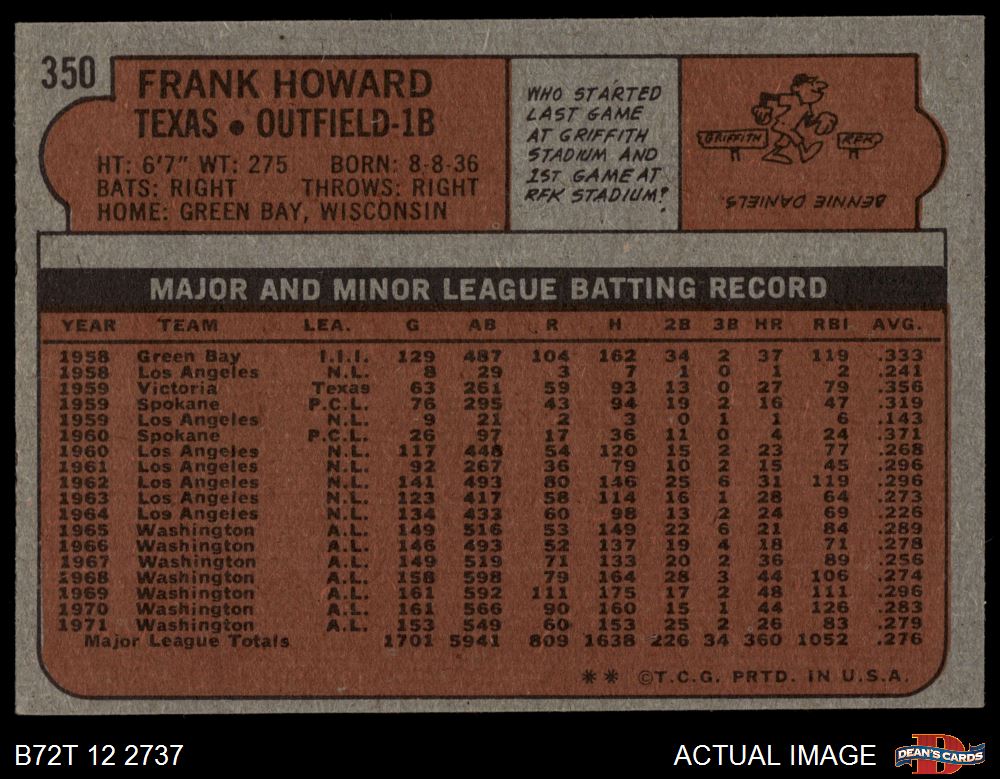 1972 Topps #350 Frank Howard 4 - VG/EX