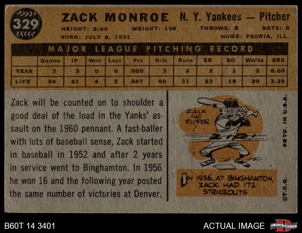 1960 Topps #329 Zack Monroe 4 - VG/EX