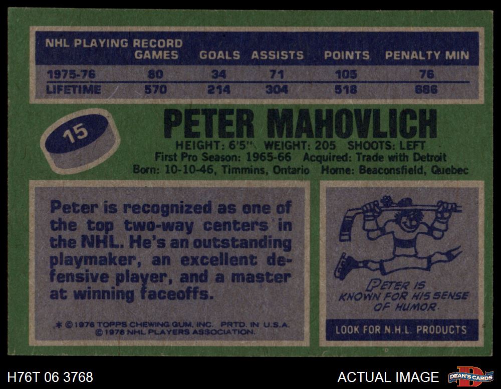 1976 Topps #15 Peter Mahovlich 6.5 - EX/MT+