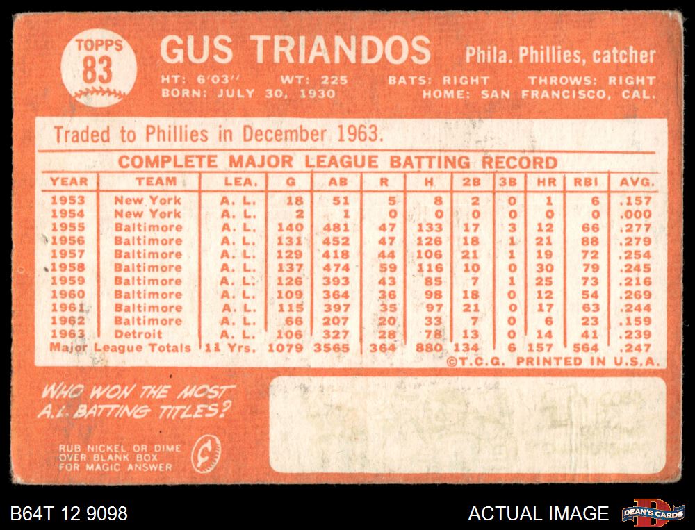 1964 Topps #83 Gus Triandos Front Thumbnail