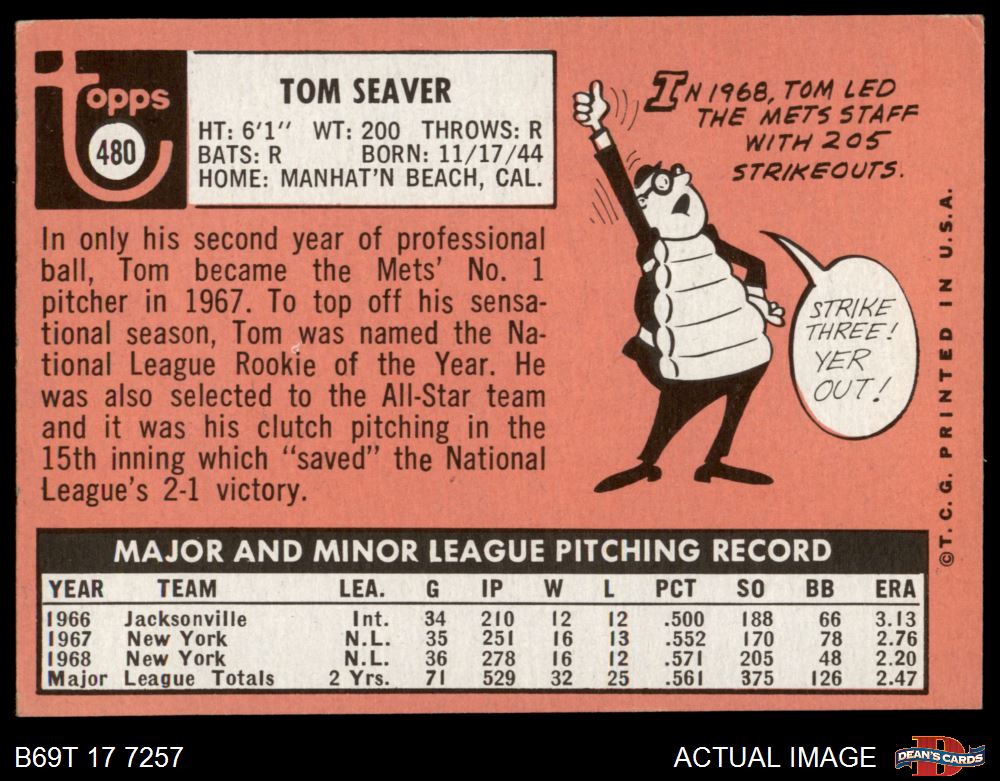 1969 Topps #480 Tom Seaver 4 - VG/EX