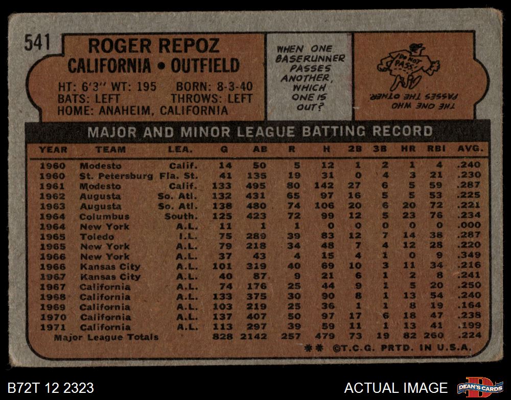 1972 Topps #541 Roger Repoz 1 - POOR