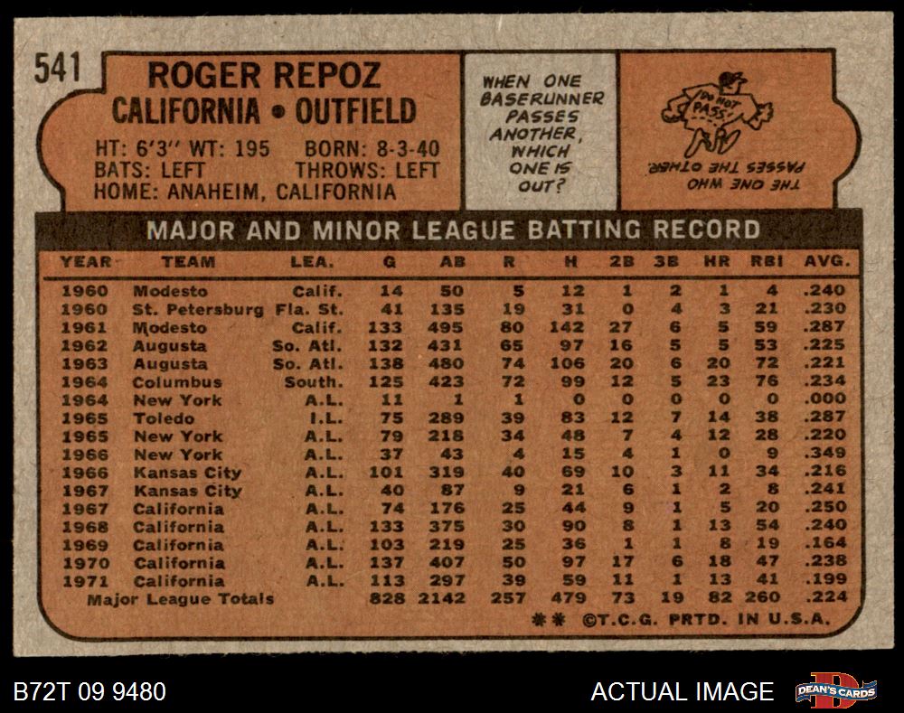 1972 Topps #541 Roger Repoz 6 - EX/MT