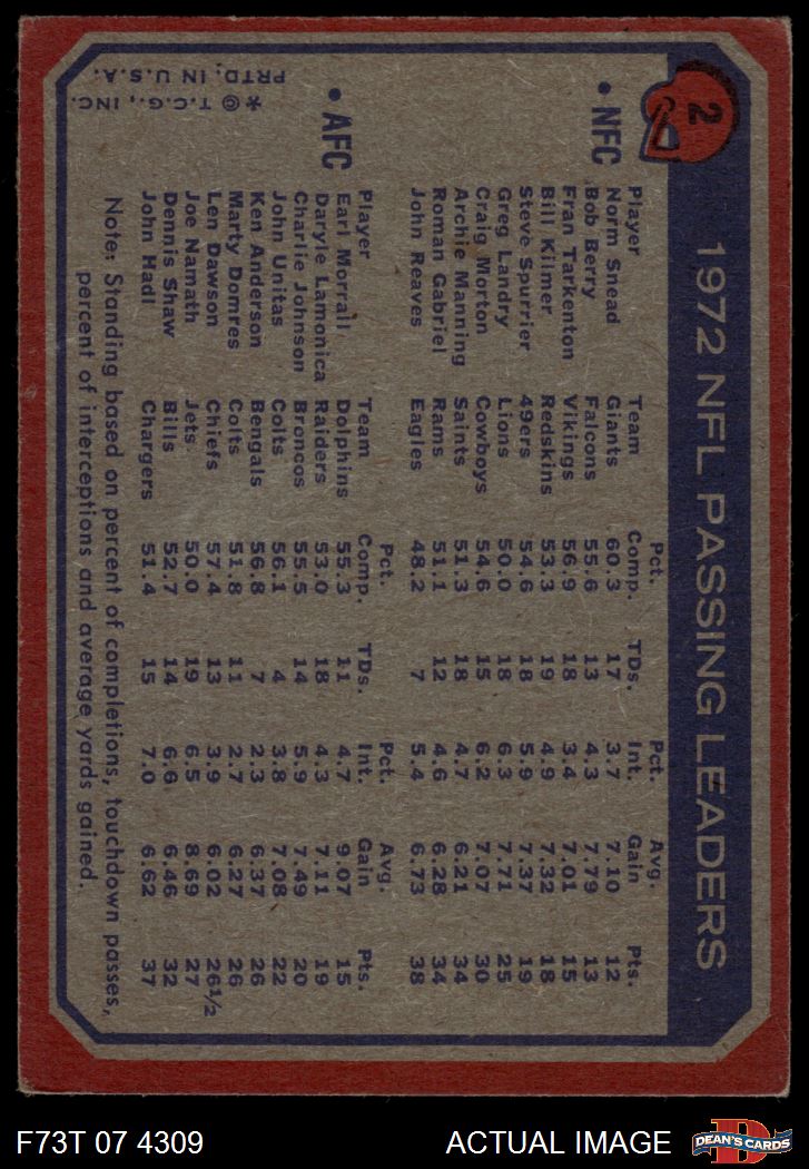 1973 Topps #2 - Norm Snead / Earl Morrall Passing Leaders 2 - GOOD