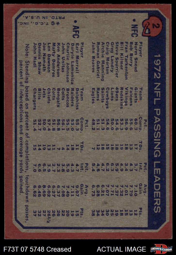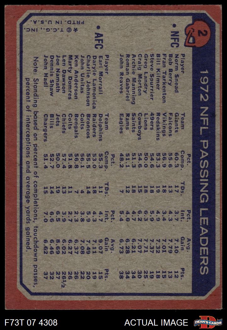 1973 Topps #2 - Norm Snead / Earl Morrall Passing Leaders 3 - VG