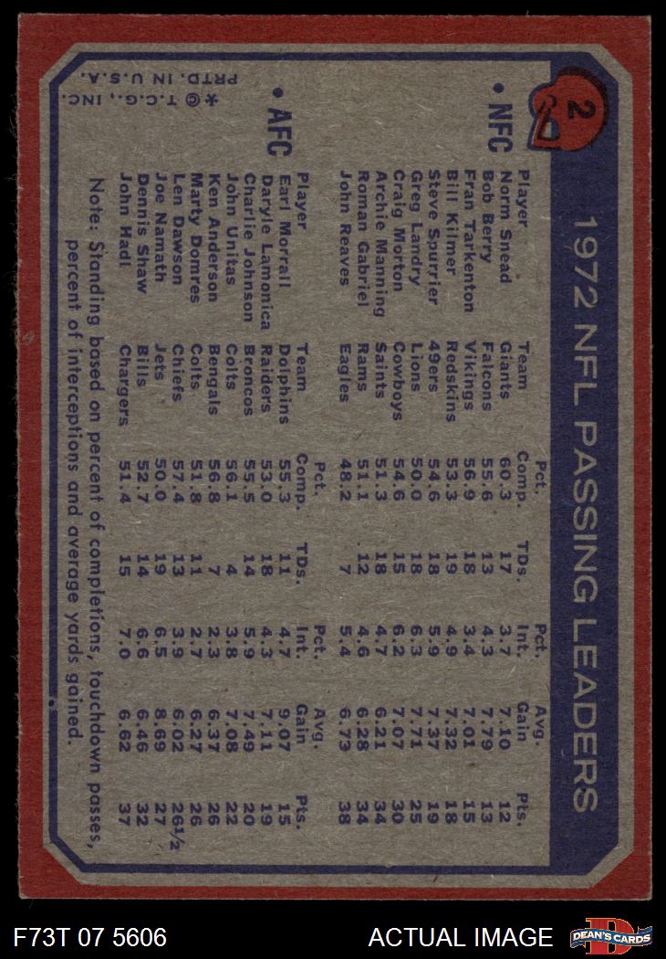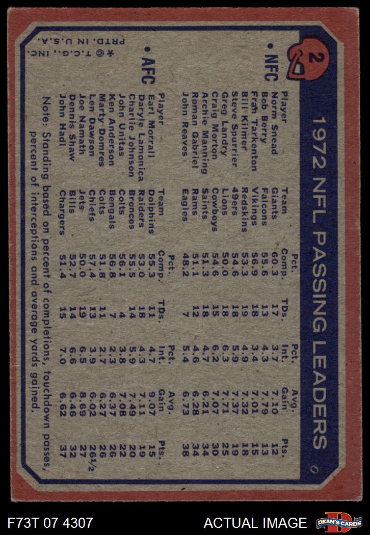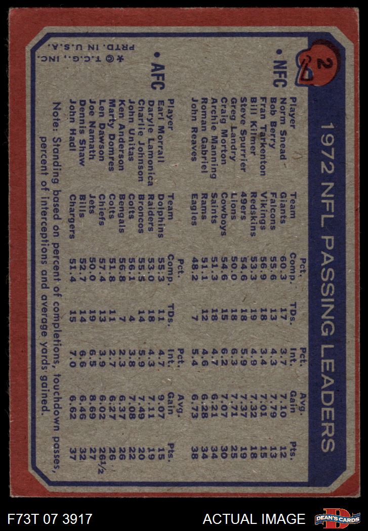 1973 Topps #2 - Norm Snead / Earl Morrall Passing Leaders 4 - VG/EX