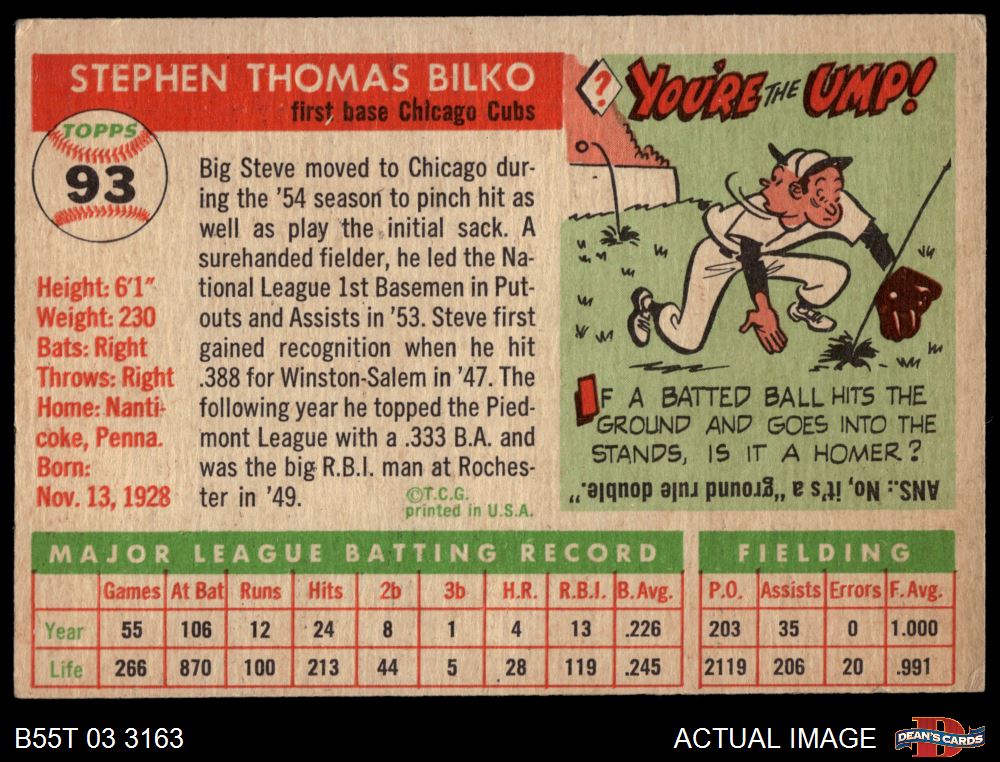 1955 Topps #93 Steve Bilko 2 - GOOD