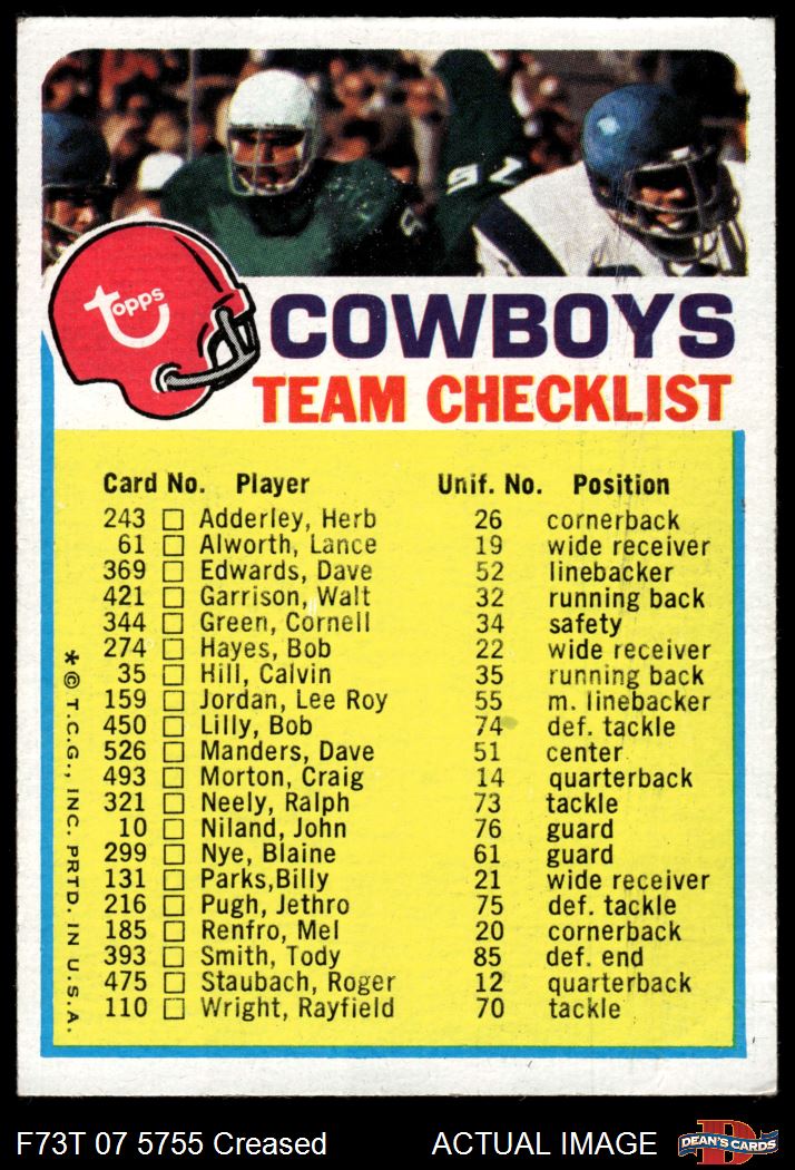 1973 Topps Checklist  Cowboys Front Thumbnail