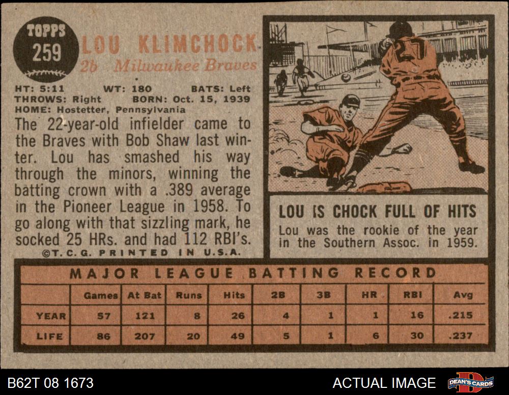 1962 Topps #259 Lou Klimchock 6 - EX/MT
