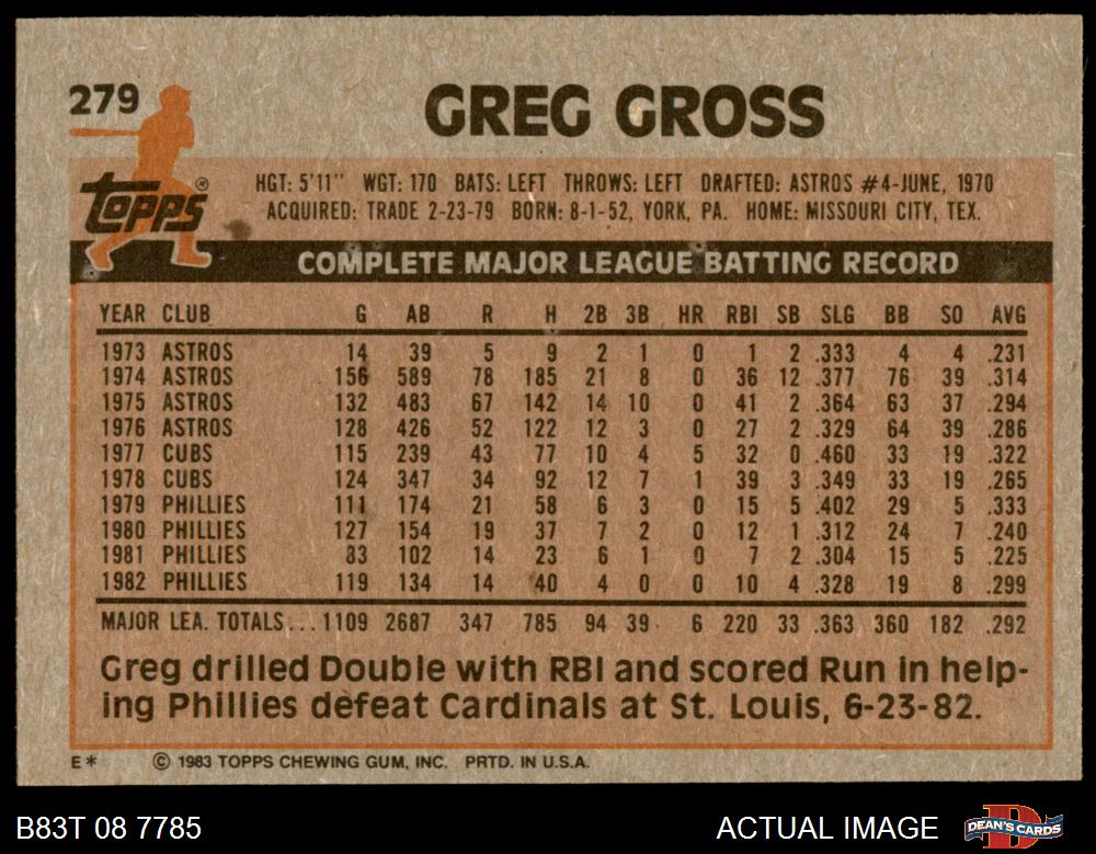 1983 Topps #279 Greg Gross 4 - VG/EX