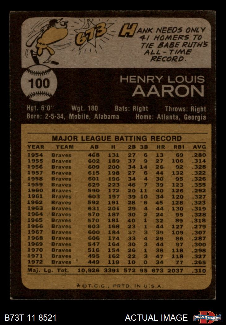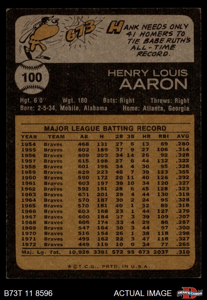 1973 Topps #100 Hank Aaron