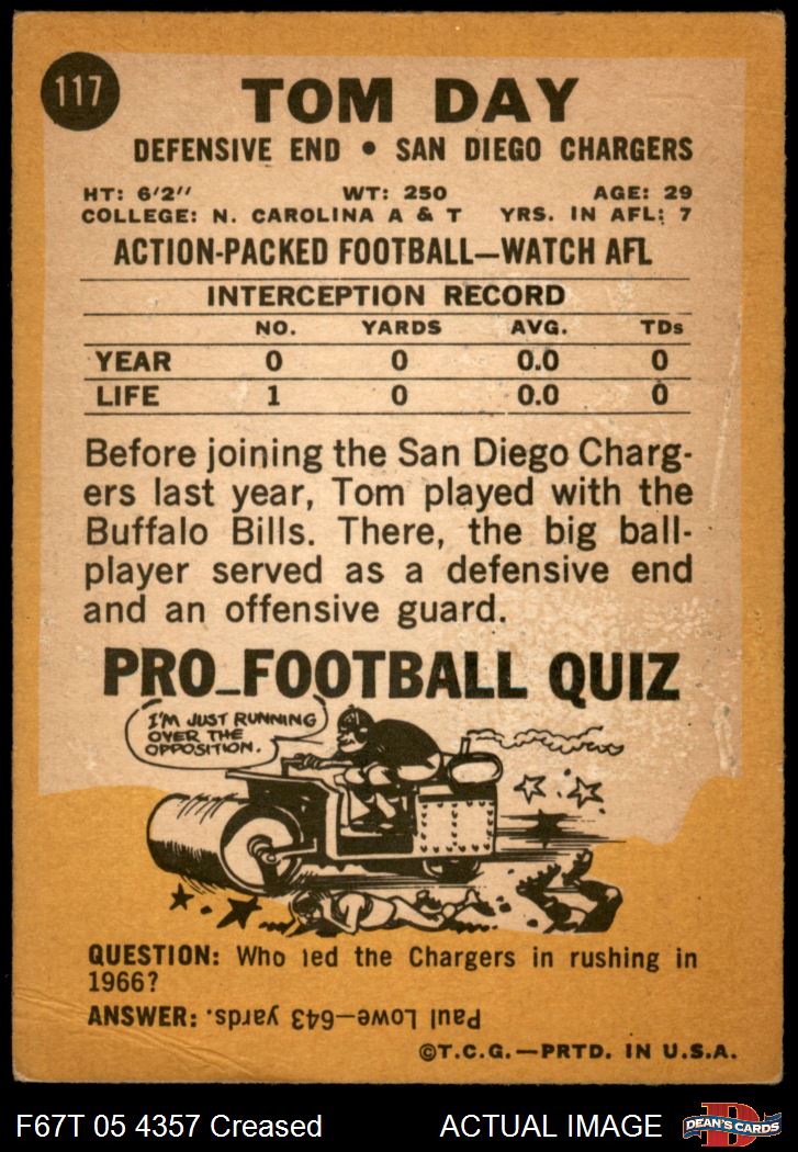 1967 Topps #117 A Tom Day 2.5 - GD+