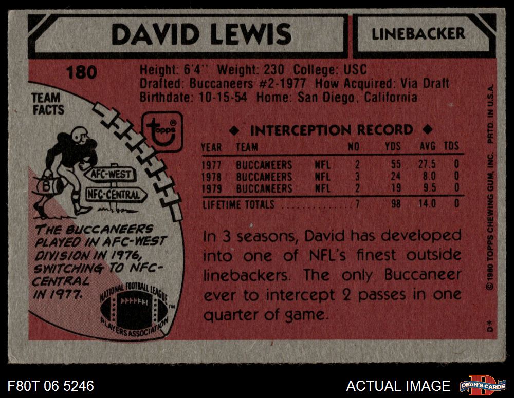 1980 Topps #180 - David Lewis All-Pro 2 - GOOD