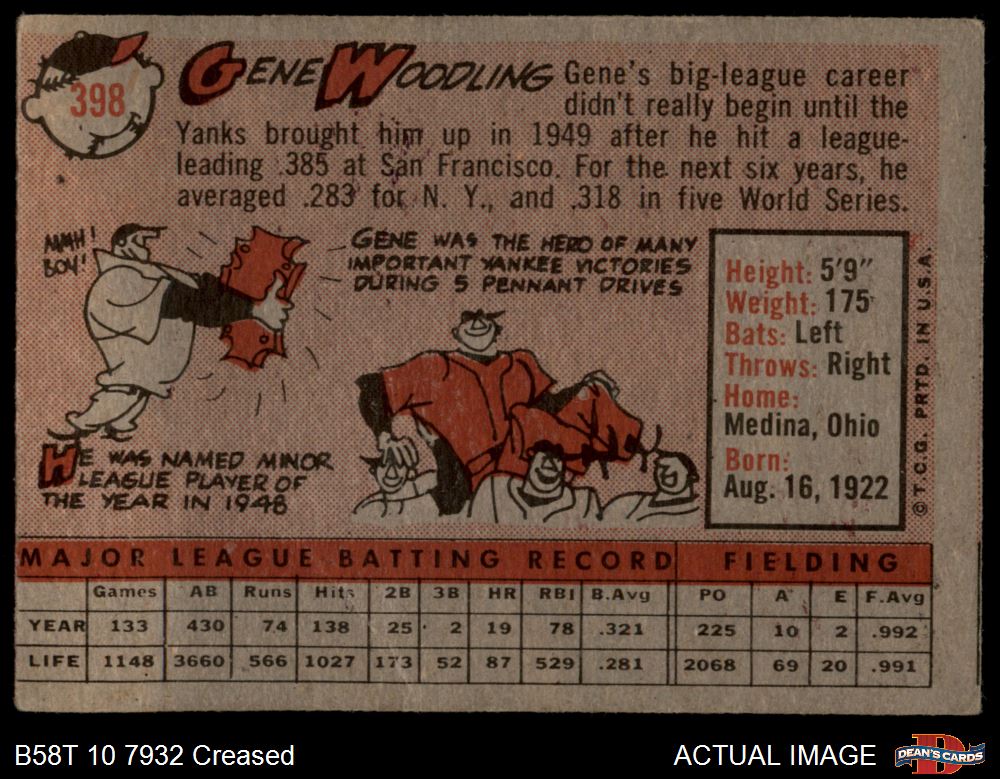 1958 Topps #398 Gene Woodling 2 - GOOD