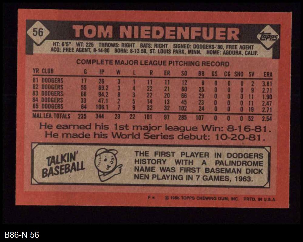 1986 Topps Baseball Cards (4,716 available)1986 Topps Dodgers (268 available)