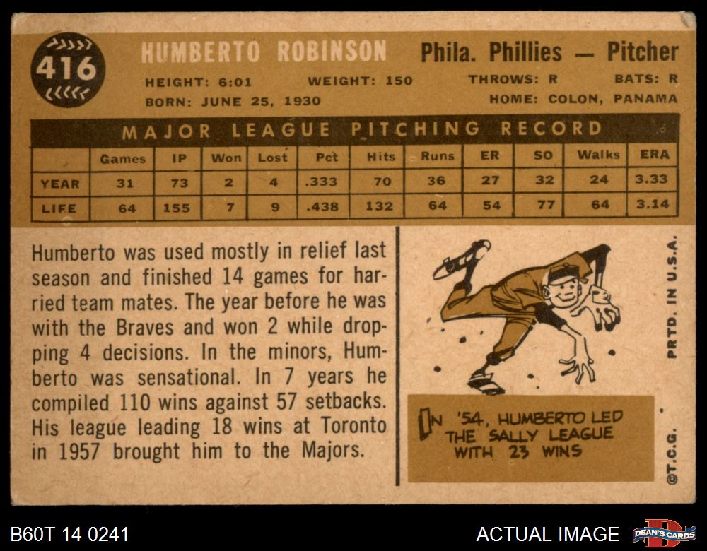 1960 Topps #416 Humberto Robinson 4.5 - VG/EX+