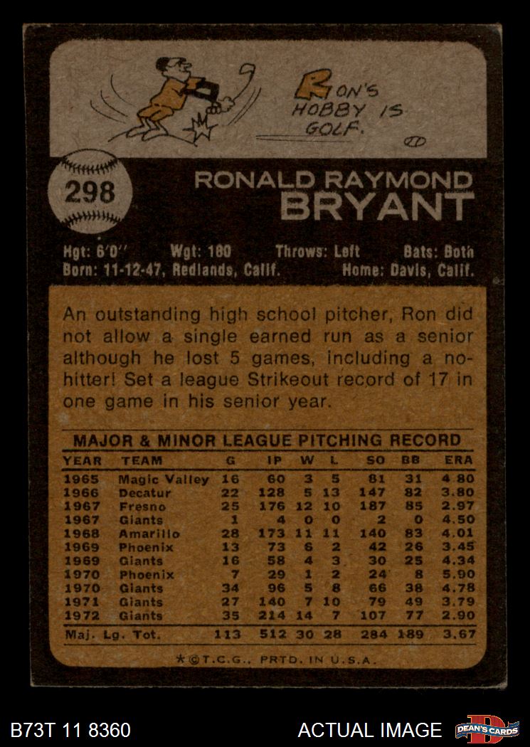 1973 Topps #298 Ron Bryant 3.5 - VG+