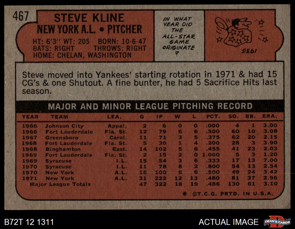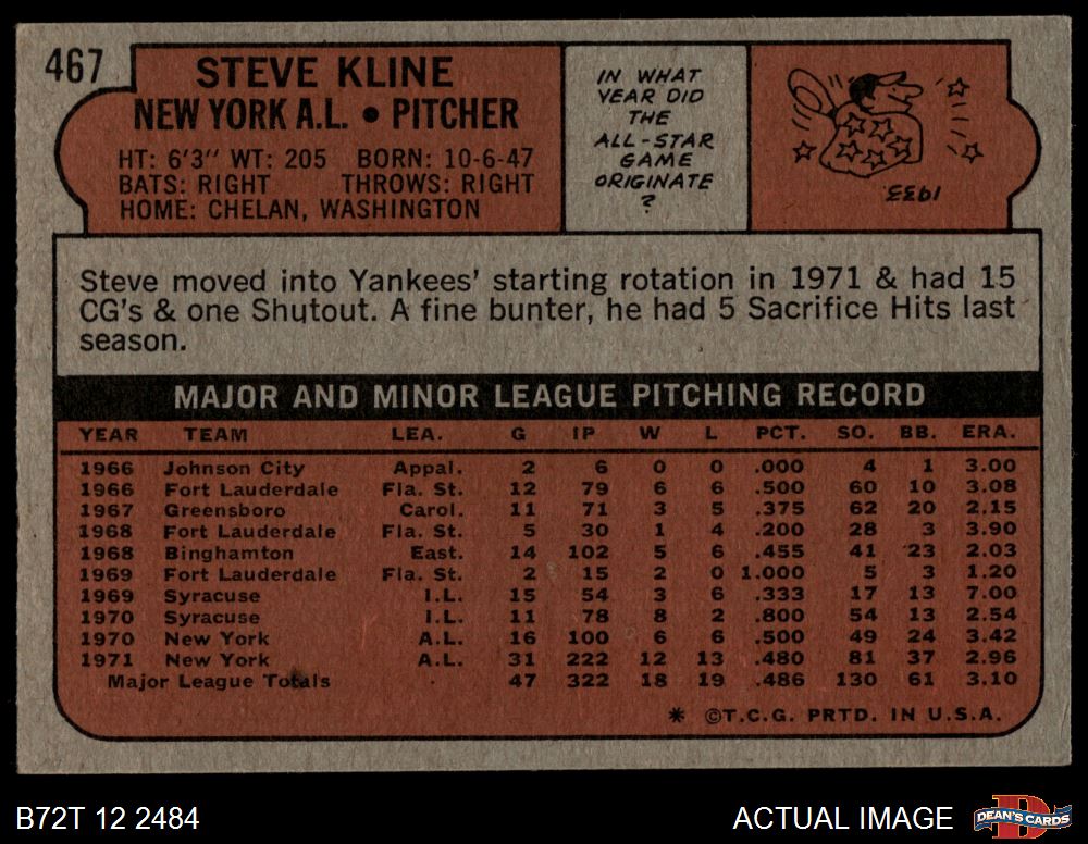 1972 Topps #467 Steve Kline 4 - VG/EX
