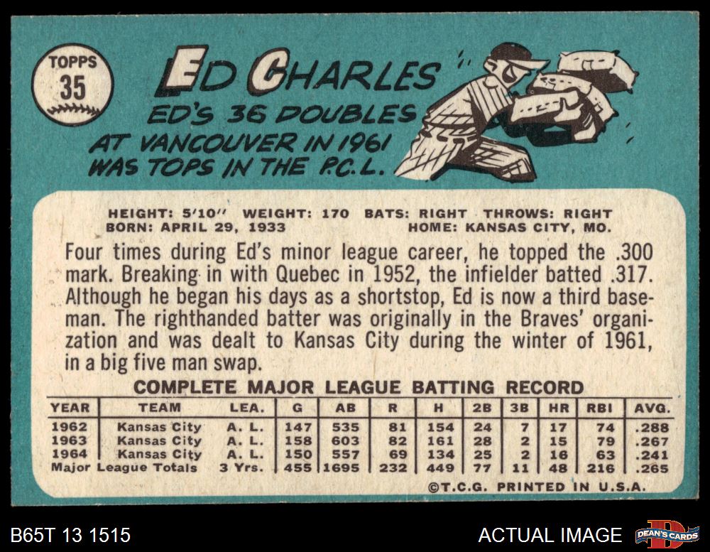1965 Topps #35 Ed Charles 4 - VG/EX