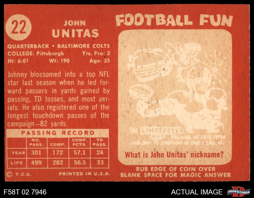 1958 Topps #22 Johnny Unitas 4 - VG/EX