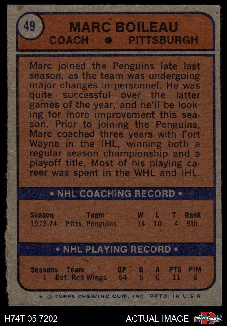 1974 Topps #49 Marc Boileau