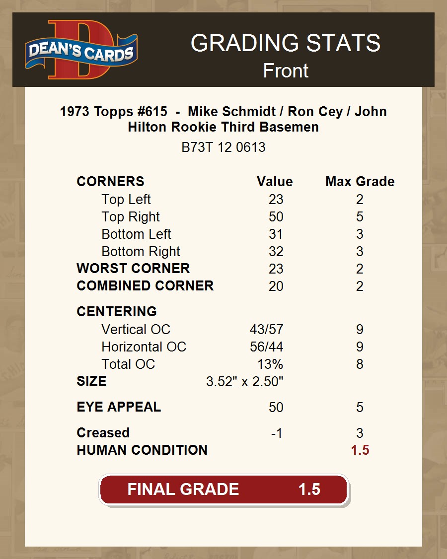 1973 Topps #615 - Mike Schmidt / Ron Cey / John Hilton Rookie Third Basemen 1.5 - FAIR