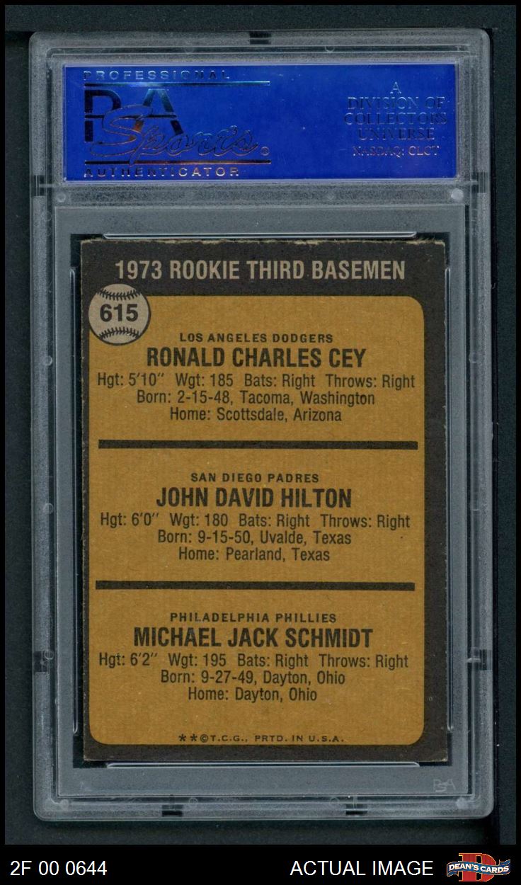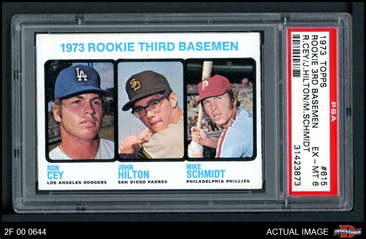 1973 Topps #615 - Mike Schmidt / Ron Cey / John Hilton Rookie Third Basemen PSA 6 - EX/MT