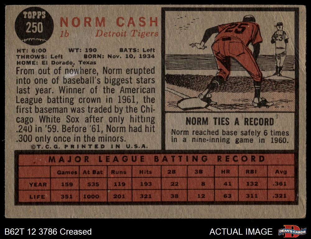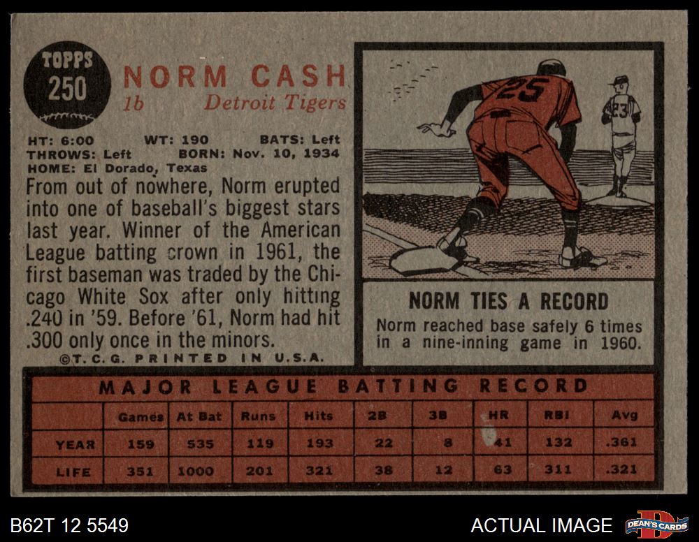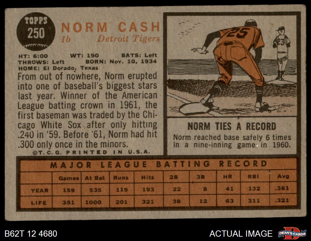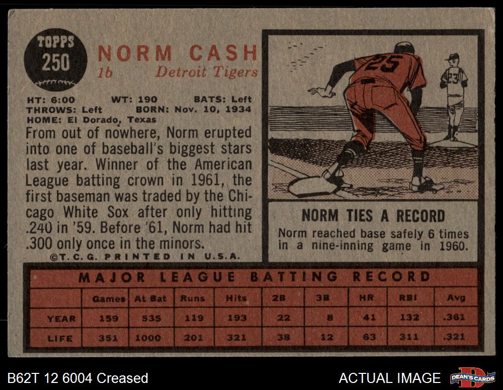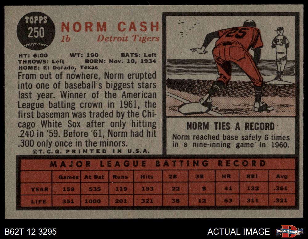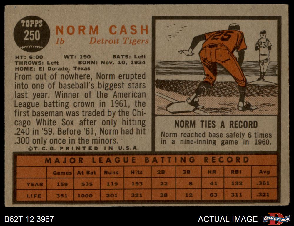 1962 Topps #250 Norm Cash