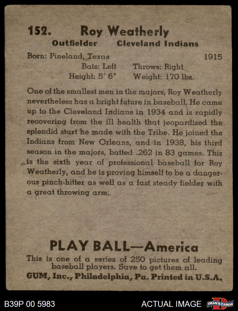 1939 Play Ball #152 Roy Weatherly 4 - VG/EX