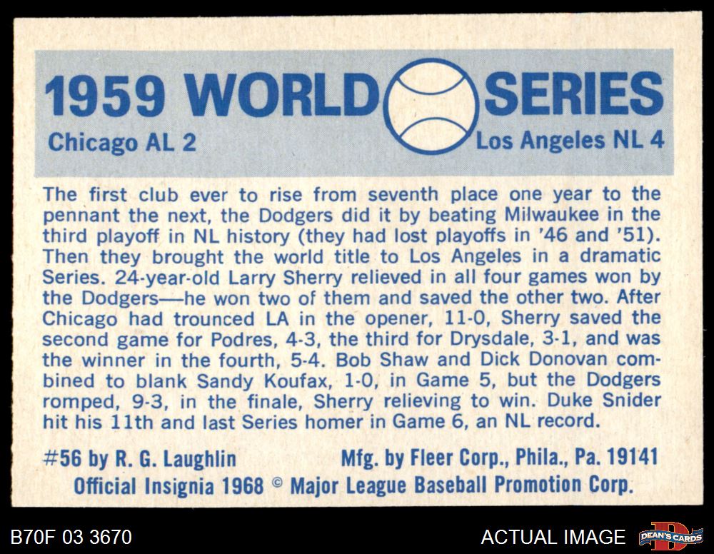 1970 Fleer World Series #56 - Chuck Essegian 1959 Dodgers vs. White Sox 7 - NM