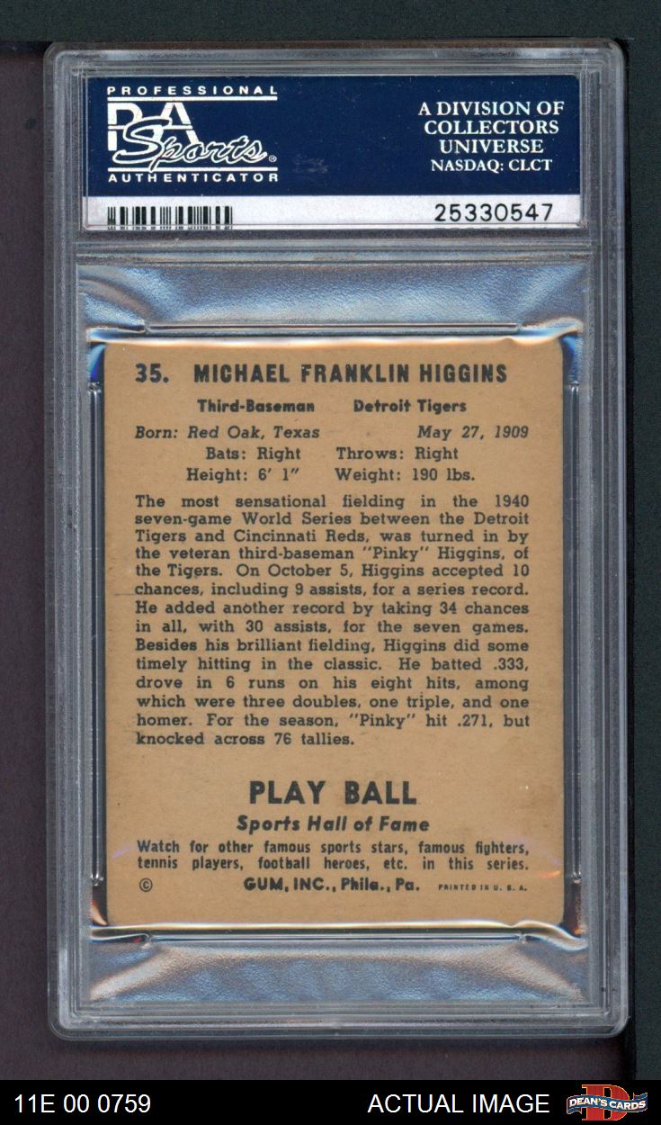 1941 Play Ball #35 Pinky Higgins PSA 3 - VG