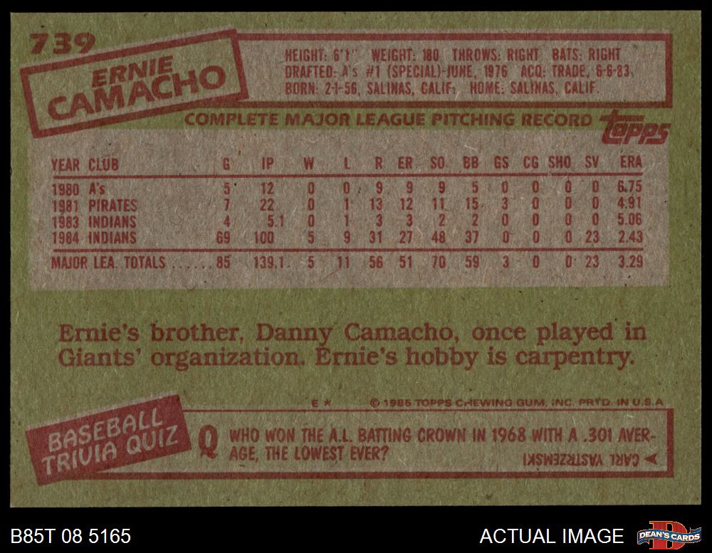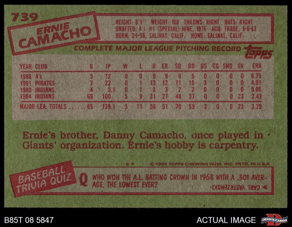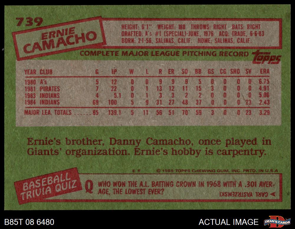 1985 Topps #739 Ernie Camacho