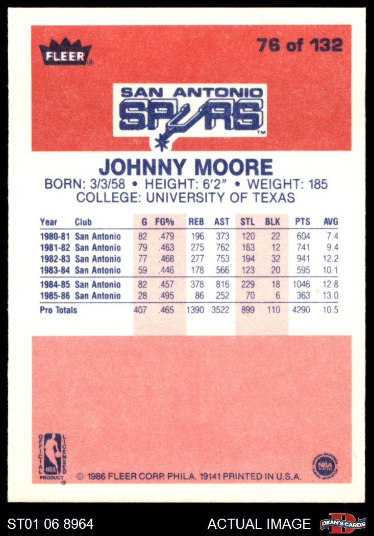 1986-87 Fleer Basketball Cards (205 available)1986 Fleer Spurs (10 available)