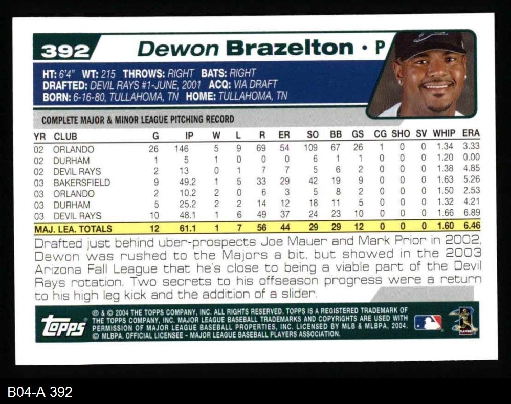 2004 Topps #392 Dewon Brazelton