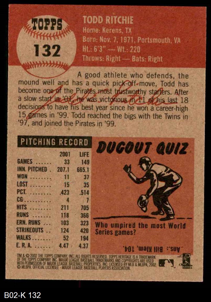 2002 Topps Heritage Baseball Cards (1,396 available)2002 Topps Heritage Pirates (46 available)