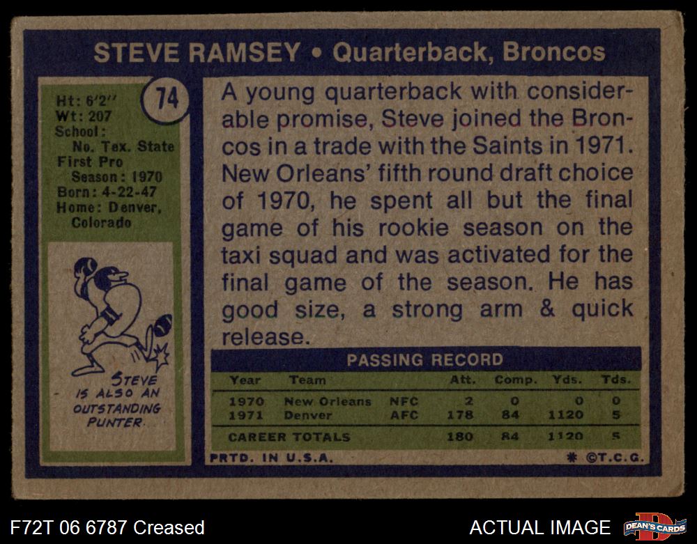1972 Topps #74 Steve Ramsey 1 - POOR