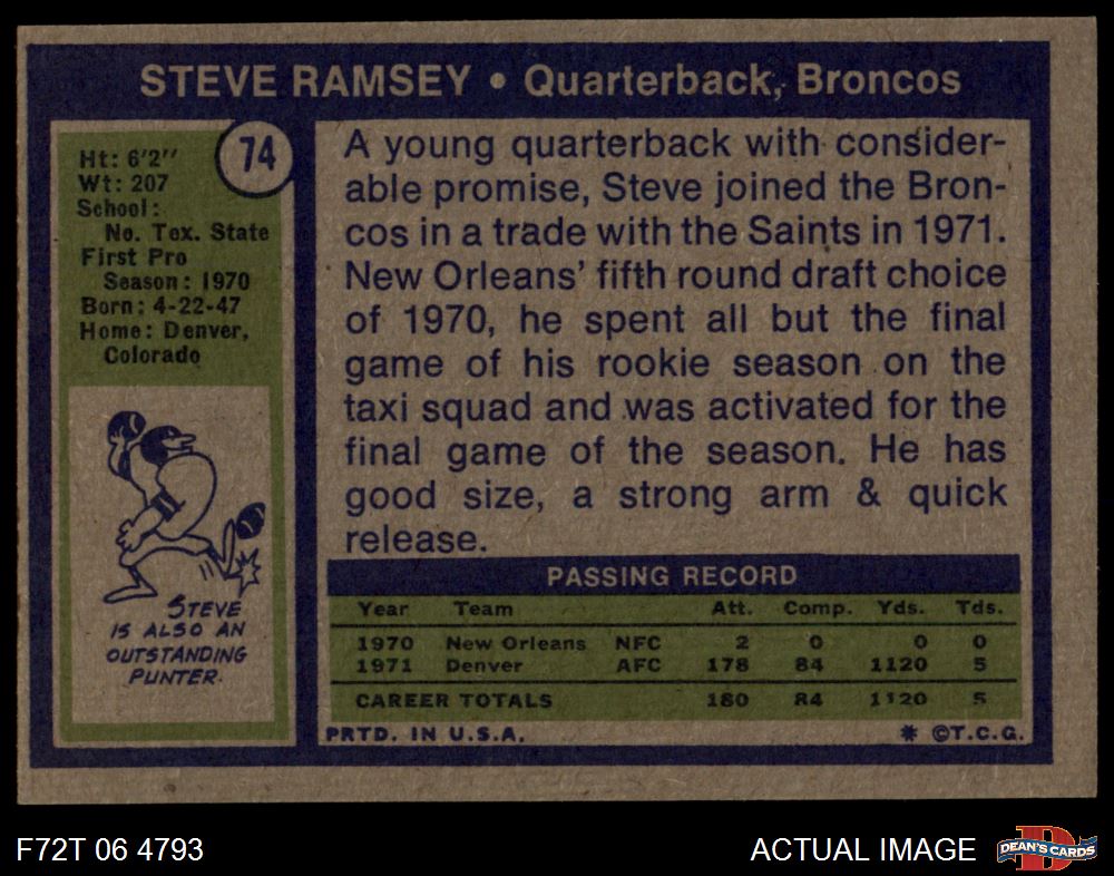 1972 Topps #74 Steve Ramsey 7 - NM