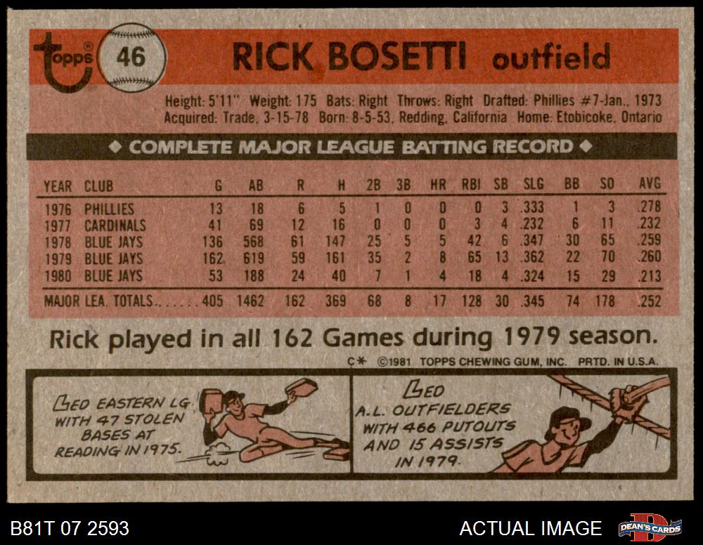1981 Topps #46 Rick Bosetti 7 - NM