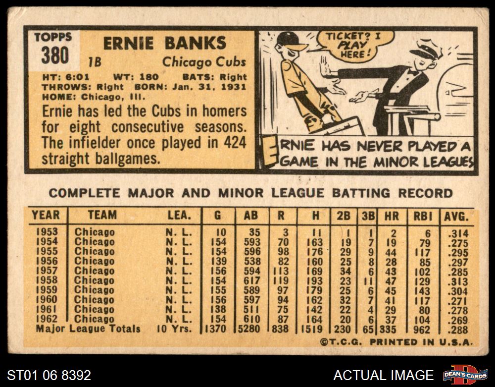 1963 Topps #380 Ernie Banks 3 - VG